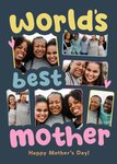 A bold and affectionate Mother’s Day card with a dark background, featuring multiple personalised photo frames surrounding the words “World’s Best Mother” in playful typography.