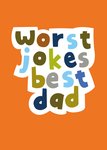 This bold and colourful Father's Day card features playful, chunky lettering in a mix of blues, greens, and earthy tones. Set on a bright orange background, it’s a cheeky and heartfelt way to celebrate Dad’s legendary (and groan-worthy) humour.