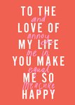 Featuring a mixture of big, bold, pink text and handwritten style white text on a red background. With an upside down smiley yellow face at the bottom of the card.