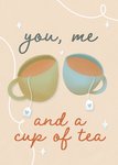 Illustration of two cups of tea clinking together surrounded by handdrawn text.