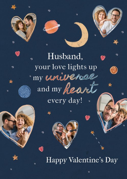 "Husband, your love lights up my universe and my heart every day! Happy Valentine's Day."