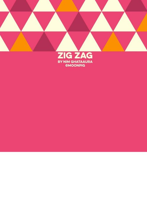 Pink, cream and orange geometric triangle pattern with text in the centre