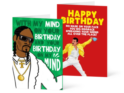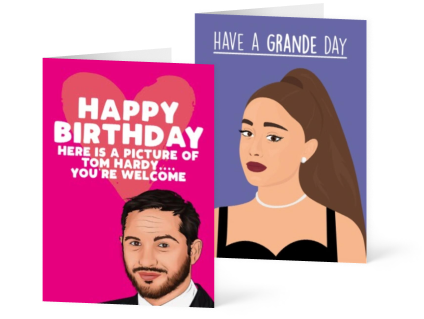 Make their day a little bit brighter with one of our popular cards. From Kayne and Sting to Ru Paul and Carole Baskin, there's so many delightful designs that will bring a big smile to their face.
