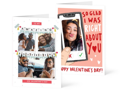 Make your Valentine’s Day card stand out from the crowd with our photo upload and personalised designs. Whether you’re adding a name, funny snap, or creating a collage of your favourite pictures, we have many unique Valentine’s Day photo cards that they'll absolutely adore.