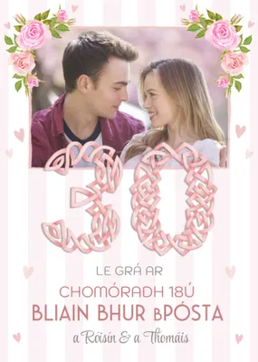 Celtic Pink Knot Styled Number Thirty Photo Upload Birthday Card