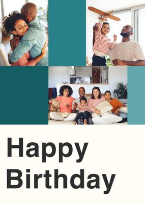 Bold Teal Block Multi Colour Photo Upload Birthday Card