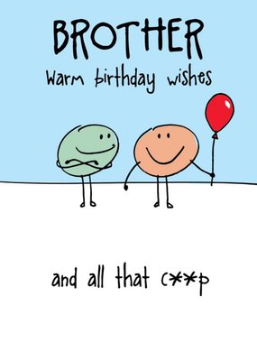 Illustration Of Two Character One With A Balloon Funny Brother's Birthday Card