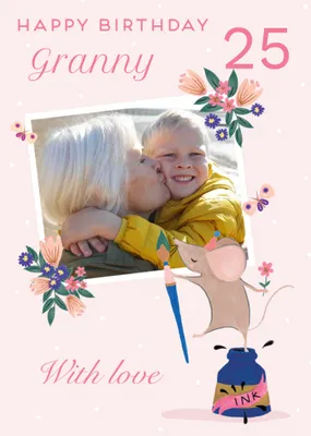 Waffle Cute Illustrated Mouse Granny 60th Birthday Card