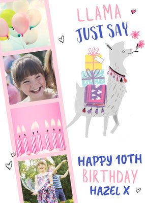 Boogaloo Llama Just Say 10th Birthday Illustrated Photo Upload Birthday Card