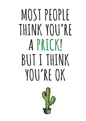 Typographical Most People Think Youre A Prick But I think Youre Ok Card