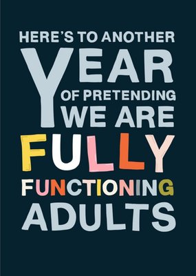 Here's To Another Year Of Pretending We Are Fully Functioning Adults Anniversary Card
