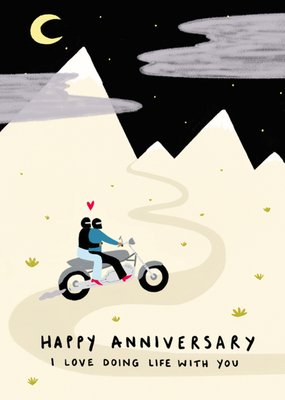 I Love Doing Life With You Illustrated Couple On Motorbike Anniversary Card