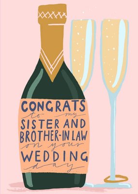 Illustration of Champagne Bottle and Glasses Congrats To My Sister and Brother In Law On Your Weddin