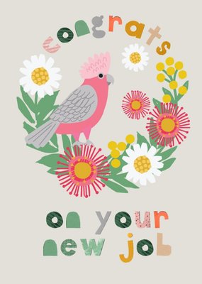 Bright Colourful Floral Parrot Congrats On Your New Job Card