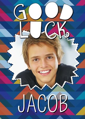 Colourful Patterned Personalised Photo Upload Good Luck Card