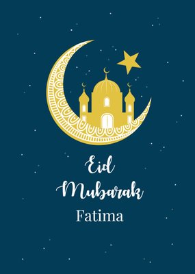 Beautiful Eid Mubarak Illustrated Crescent Moon Mosque Skyline Eid Card