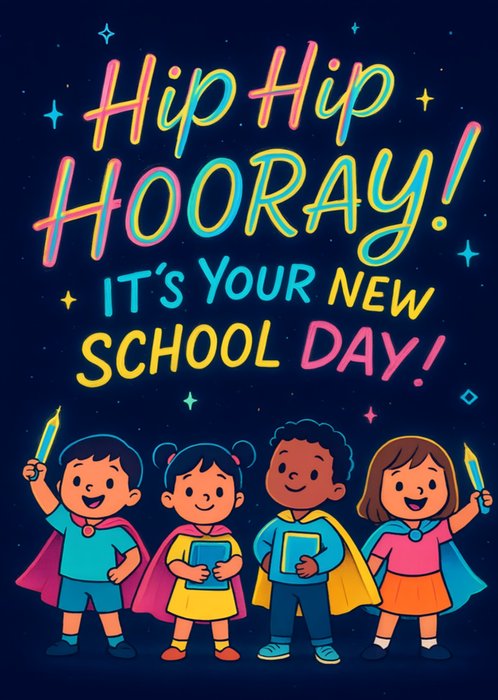 Illustrated Superhero Children Hip Hip Hooray It's Your New School Day Card