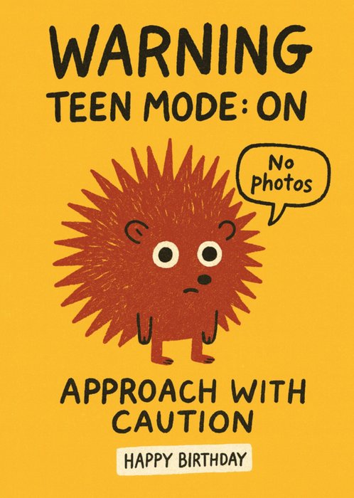 "Warning Teen mode: on. No photos. Approach with caution. Happy birthday."