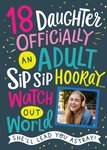 “18 Daughter, officially an adult. Sip sip hooray... Watch out world. She'll lead you astray!”