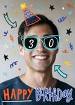 30th Birhday Bright Graphic Photo Upload Birthday Card