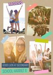 A Little Note four photo upload card, wishing a female friend good luck at Secondary School. Brown kraft paper background with different coloured tape holding the photos on the card.