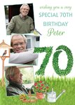 Features a bush in the shape of the number 70 and 3 photo upload areas.