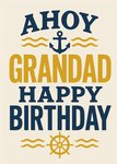 A modern design featuring bold nautical typography with an anchor, wave icons and a ship wheel on a cream background.