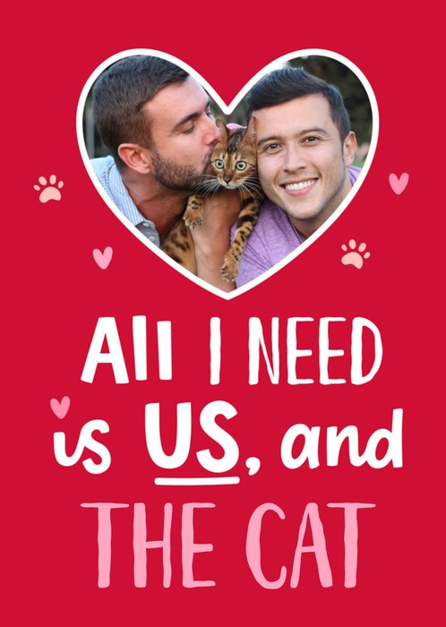 All I Need Is Us And The Cat Photo Upload Valentine's Day Card