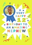 Featuring 1 photo upload area in a rosette shaped frame with colourful text in a flash burst on a lime green background.