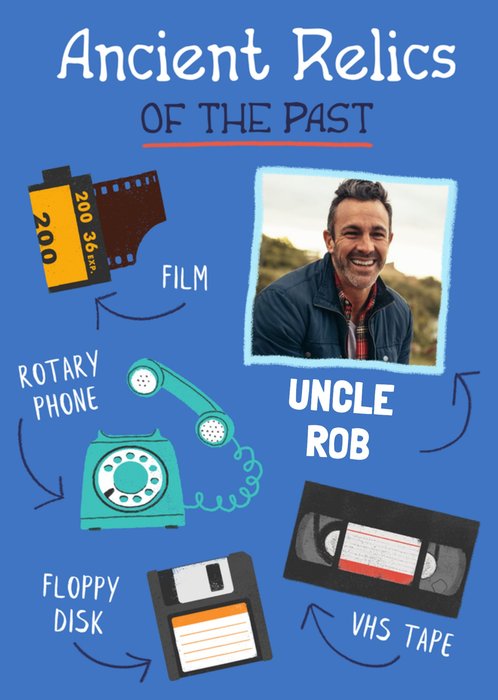 "Ancient relics of the past uncle Rob". 'Uncle Rob' can be personalised!