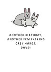 "Another birthday, a few f*cking grey hares, Dave!". 'Dave' can be personalised!