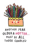 Another Year Older And Hotter Funny Illustrated Cake Birthday Card