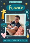 Featuring 1 photo upload frame surrounded by illustrated elements such as medals, stars, and tokens containing messages, all on a blue background, with typography throughout.