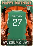 "Happy birthday Brown 27 have an awesome day!". 'Brown 27' can be personalised!