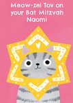 "Meow-zel tov on your Bat Mitzvah Naomi". 'Naomi' can be personalised!
