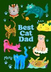 A lively and colourful Father's Day card featuring an assortment of illustrated cats in various playful and relaxed poses, surrounding the central phrase "Best Cat Dad". A purr-fect card from a feline friend.