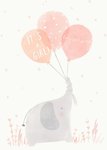 Illustrated elephant with three balloons with text on a cream background