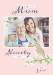 'To a Special' -fixed text, 'Mum' -editable text, 'Ninety' -editable, 'today with love' -fixed text.