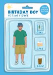 “Birthday boy action figure. Beer garden edition. Card. Cake. Beer.”