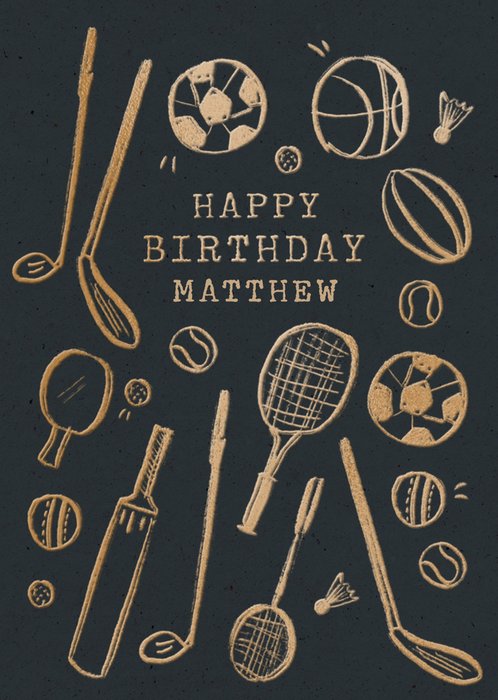 Black And Gold Sport Illustrations Happy Birthday Card
