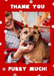Front of card: A funny and bold photo upload Christmas card featuring a large photo upload area in the centre and with silver foil polka dots in the background, emulating snowfall.
