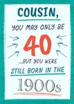 "Cousin, you may only be 40 but you were still born in the 1900s". 'Cousin' and '40' can be personalised!