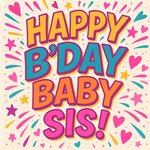 Bright & Bold Happy B'Day Baby Sis Typography Card