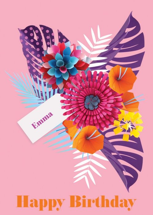 Bright Pink Tropical Flowers Personalised Happy Birthday Card