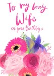 Bright Pink Watercolour Flowers lovely Wife on your birthday Postcard