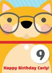 Cartoon Cat With Glasses Personalised Happy 9th Birthday Card