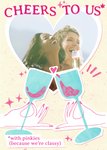 Text reads: "Cheers to us*, *with pinkies (because we're classy)."