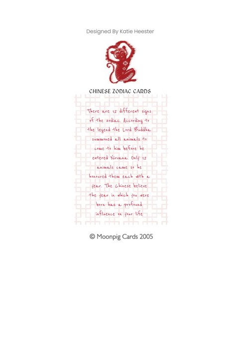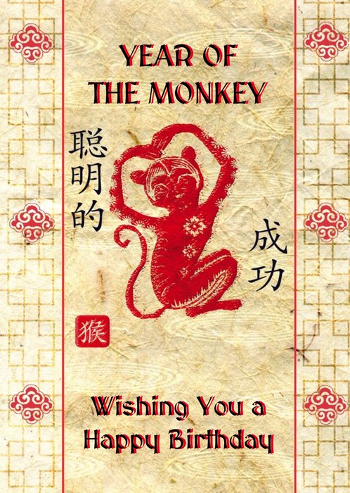 Chinese Zodiac Card Year Of The Monkey Personalised Chinese New Year Card