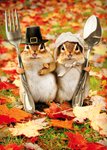 Featuring a cute photograph of a pair of chipmunks among autumn leaves with silverware.