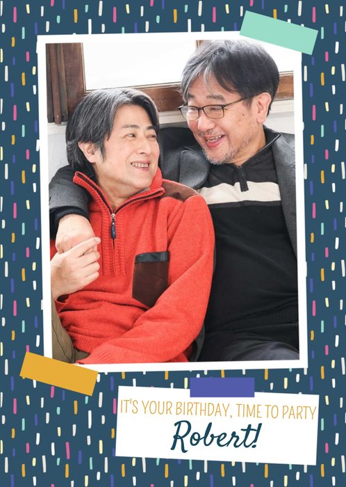 Colourful Dashes Happy Birthday Photo Card